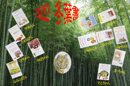 明けましておめでとうございます。(竹藪にトラ)皆様の心のこもったお葉書有難くいただきました。今年は平穏な年であります様に祈ります。JPCで楽しく脳トレに励みたいと思います。どうぞ皆様よろしくお願い致します。 |