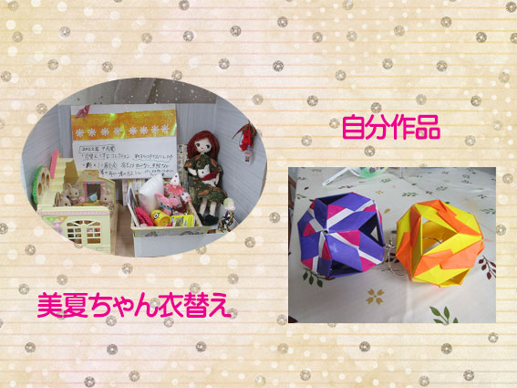 折り方は、色紙の裏、表のベースなどの組み合わせで作品が変わるので楽しみました。 |