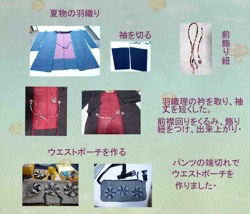 | ななふくさん 着物のリホーム いつも自分でデザインを考えセンスのいい作品に仕上げておられますね。お孫さんなどの洋服や小物なども手作りされてましたね(脱帽) |