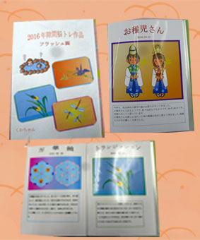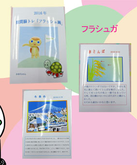 | よねちゃん 油絵 公園の木の光と影上手く出ていますね。人形の細かいレース等も、フラッシュ画は花菖蒲が好きです。 | かめちゃん 富士山のフラッシュ画 苦労されたって、素敵ですよ。また春の蝶ちょや、秋のトンボの動画も楽しそう。 | まっちゃん メモリアル 1月信貴山初詣りから12月まで沢山の活動をよくされ、楽しまれましたね。 身体に気を付け頑張ってね。、 |