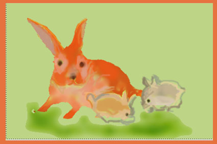 今年の干支ウサギのイラストをクリスタ画しました。親子仲良く食 事しているのでしょうか。穏やかな日々が続きます様に祈ります。 |