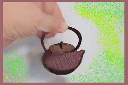 鉄瓶「南部鉄瓶ミニチュア」私の母が東北地方に旅行に行った時nの岩手県のお土産です(50年前) 飾り棚の奥にありました。クリスタ画にしましたが模様が細かくうまく出来ませんでした。 |