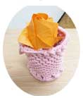 J-Mericさん・布の彫刻ブティ、かぎ針編みでプリムラの寄せ植え座布団。