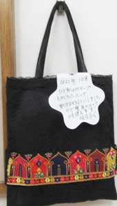 ななふくさん 「インド刺繡のテープをあしらったバッグ」取り外しができるアイデア作品ですね。 |