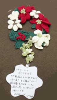 しーちゃん フラワーリースポインセチア」説明書を見ながらされ達成感を、綺麗によく頑張られましたね。素敵です。 |