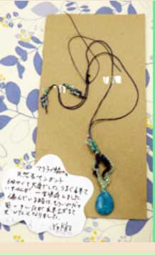 YOKKOさん 「マクラメ編みの天然石ペンダント」根気のいる仕事よく作成されましたね。この次も挑戦、脱帽です。 |