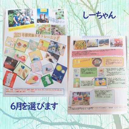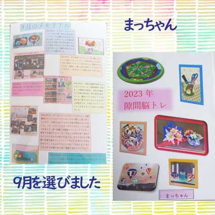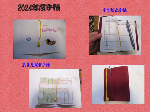 右はボケ防止手帳。見開き1週間の物で毎日の出来事が二三行の文で書けるようになっている。一年間の日にちを制作するのに時間がかかりました。
